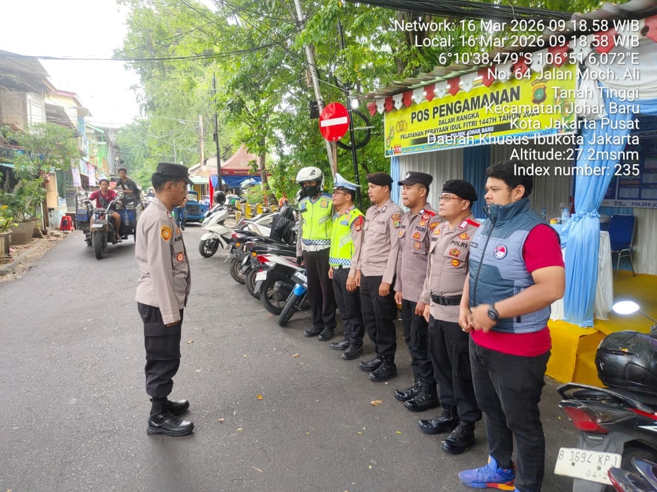 Usai apel pagi, seluruh personel langsung menempati posisi sesuai pembagian tugas masing-masing di Pos Pengamanan Operasi Ketupat Jaya 2026 Pospam Kota Paris Johar Baru.