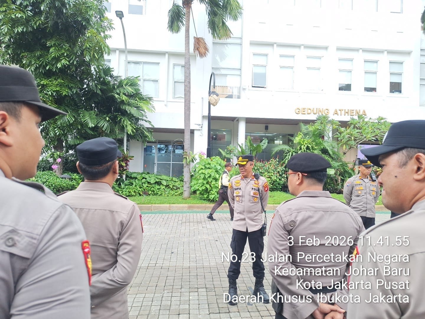 Jakarta Pusat – Kepolisian melaksanakan apel pelayanan pengamanan aksi unjuk rasa di depan Kantor Badan Pengawas Obat dan Makanan (BPOM), Jalan Percetakan Negara No. 23, Kecamatan Johar Baru, Jakarta Pusat, Selasa (3/2/2026) sekitar pukul 11.30 WIB.