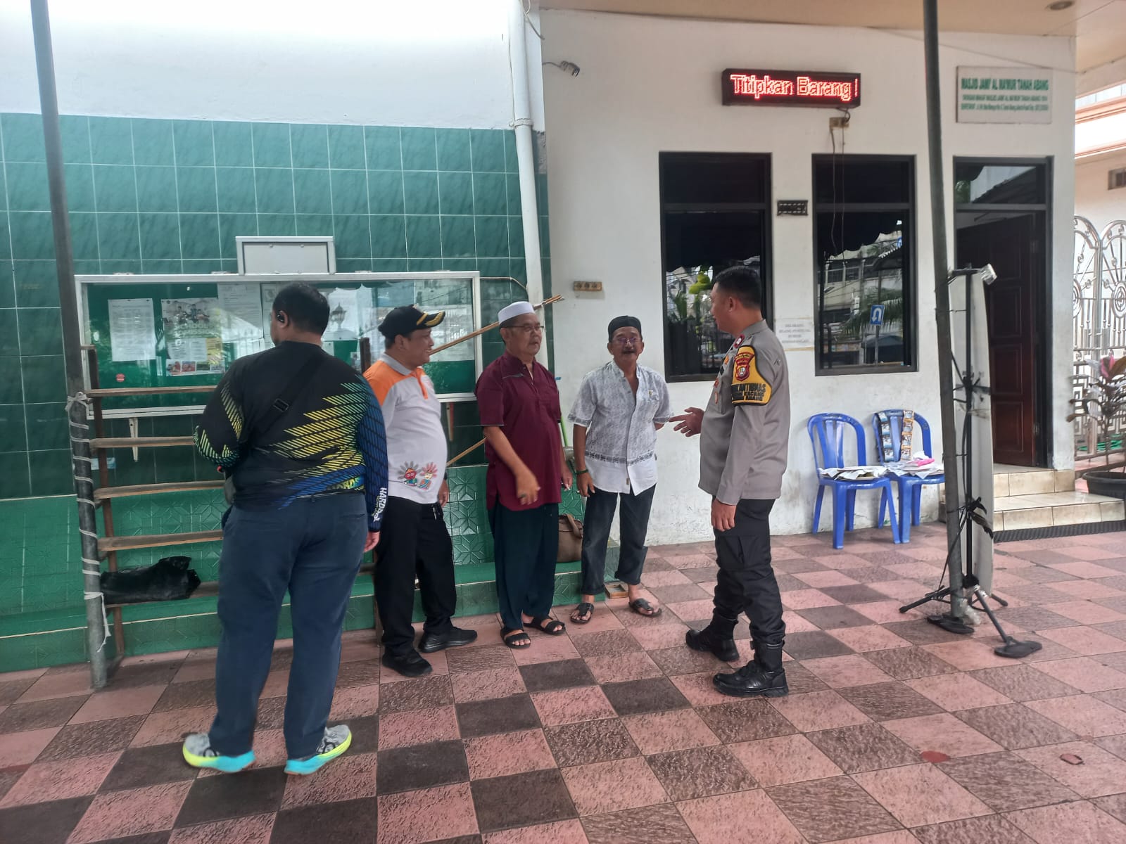 Jakarta Pusat — Bhabinkamtibmas Kelurahan Kebon Kacang, Aiptu Suhartono, melaksanakan kegiatan Cooling System melalui sambang dialogis kepada pengurus DKM Masjid Jami Al Makmur yang berada di RW 07 Kelurahan Kebon Kacang, Kecamatan Tanah Abang, Jakarta Pusat, pada Jumat, (06/02/2026), siang hari.