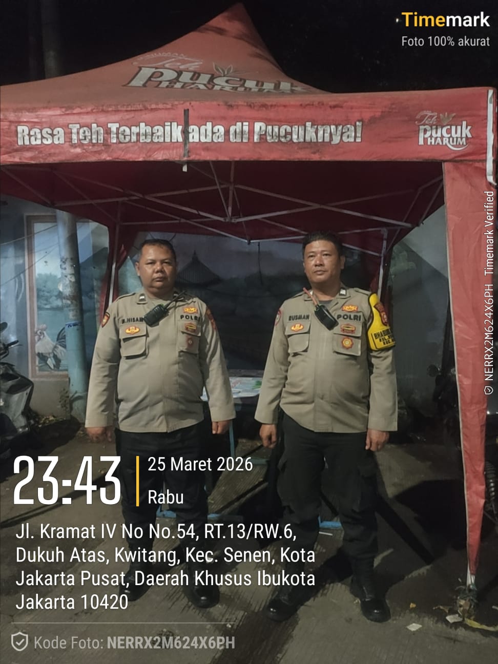 Jakarta Pusat — Upaya menjaga keamanan dan ketertiban masyarakat (kamtibmas) terus digencarkan jajaran kepolisian di wilayah Menteng. Bhabinkamtibmas Kelurahan Kebon Sirih Ujang Rusman bersama Hisam melaksanakan pemantauan intensif di kawasan perbatasan Kalipasir, Menteng, Jakarta Pusat, sebagai langkah antisipasi terhadap potensi tawuran warga dan kejahatan malam hari. Kamis (26/3/2026)