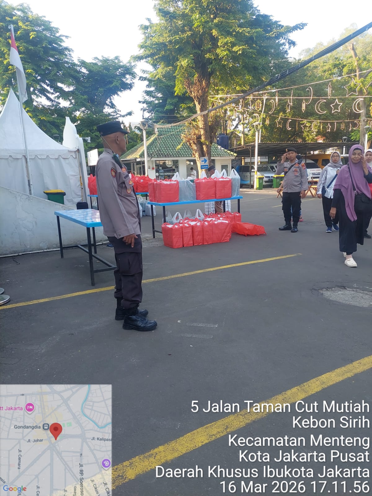 Jakarta Pusat – Personel Polsek Metro Menteng melaksanakan kegiatan pelayanan dan pengamanan pasar tumpah Ramadhan di kawasan Masjid Cut Mutia, yang berlokasi di Jalan Taman Cut Mutia, Cikini, Menteng, Jakarta Pusat. Kehadiran aparat kepolisian ini bertujuan untuk memastikan situasi keamanan dan ketertiban masyarakat tetap terjaga di tengah meningkatnya aktivitas warga yang berburu takjil menjelang waktu berbuka puasa. Senin (16/3/2026)