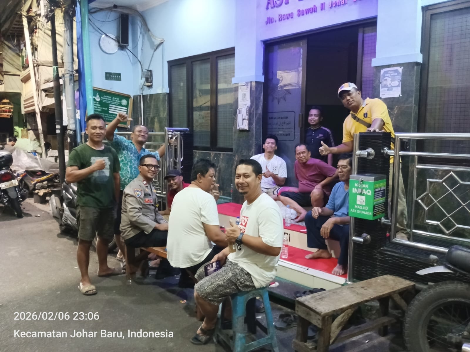 Jakarta Pusat – Dalam upaya menciptakan situasi keamanan dan ketertiban masyarakat (kamtibmas) yang aman dan kondusif, jajaran Polsek Johar Baru melaksanakan kegiatan cooling system melalui patroli wilayah dan door to door system (DDS) sambang lingkungan di RT 13 RW 01 Kelurahan Kampung Rawa, Kecamatan Johar Baru, Jakarta Pusat, Jumat (6/2/2026) malam.