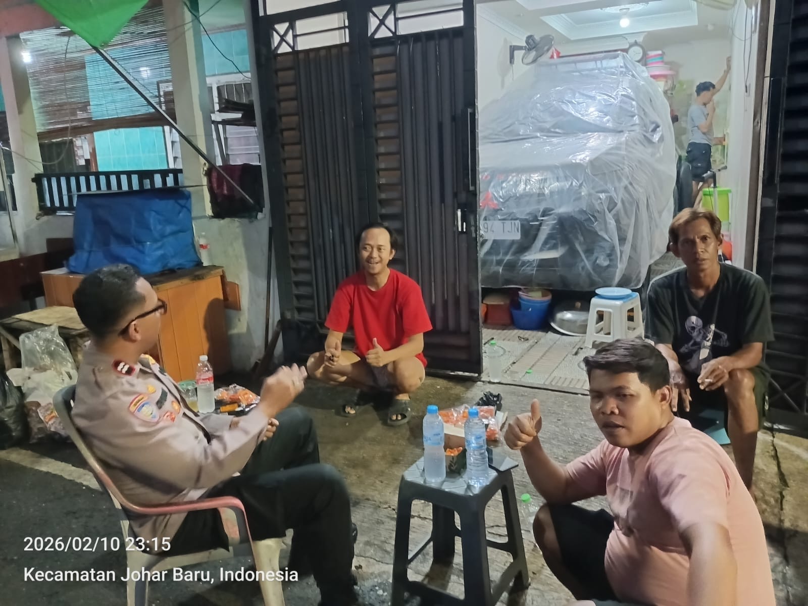 Jakarta Pusat – Jajaran Polsek Johar Baru terus mengintensifkan upaya menjaga keamanan dan ketertiban masyarakat (kamtibmas) melalui pendekatan persuasif. Bhabinkamtibmas Kelurahan Kampung Rawa, Aiptu Ikhwan, melaksanakan kegiatan cooling system, patroli wilayah, serta DDS sambang Ketua RT 013 RW 05 Kelurahan Kampung Rawa, Kecamatan Johar Baru, Jakarta Pusat, Selasa (10/2/2026) malam sekitar pukul 23.15 WIB.