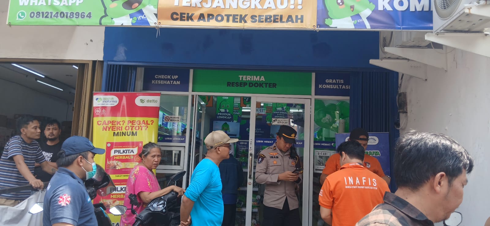 Peristiwa tersebut terjadi sekitar pukul 09.30 WIB di sebuah apotek yang berlokasi di Jalan Rawa Selatan IV No.54A, RT 05/RW 05, Kelurahan Kampung Rawa, Kecamatan Johar Baru. Korban diketahui bernama Aryanto (72), seorang pria asal Piyungan, Sleman, Yogyakarta.