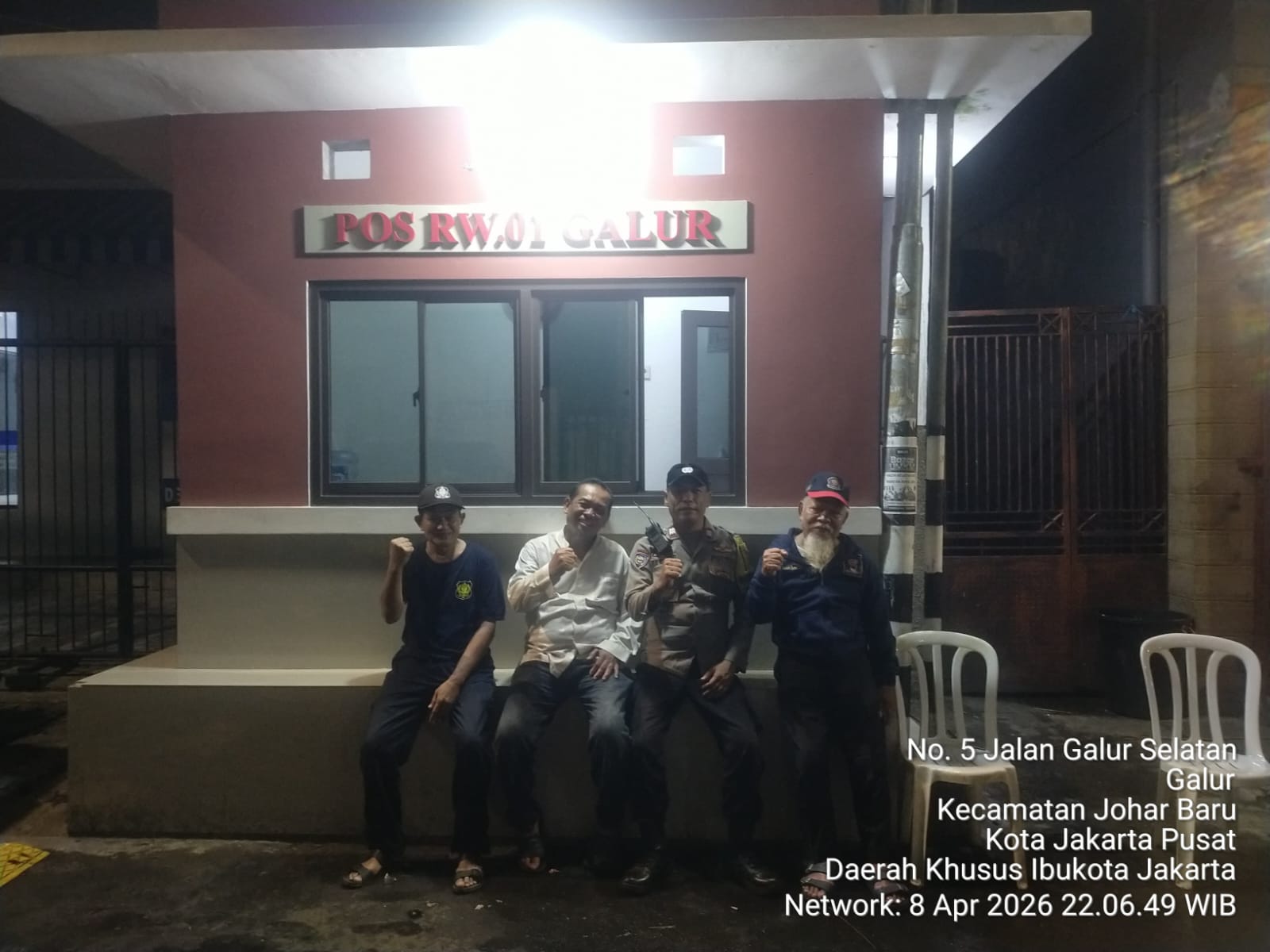 Jakarta Pusat – Bhabinkamtibmas Kelurahan Galur Aiptu Baktiar melaksanakan patroli sekaligus sambang ke Pos Kamling RW 01 di Jl. Galur Selatan, Kecamatan Johar Baru, Jakarta Pusat. Pada Rabu malam, 8 April 2026 pukul 23.00 WIB.