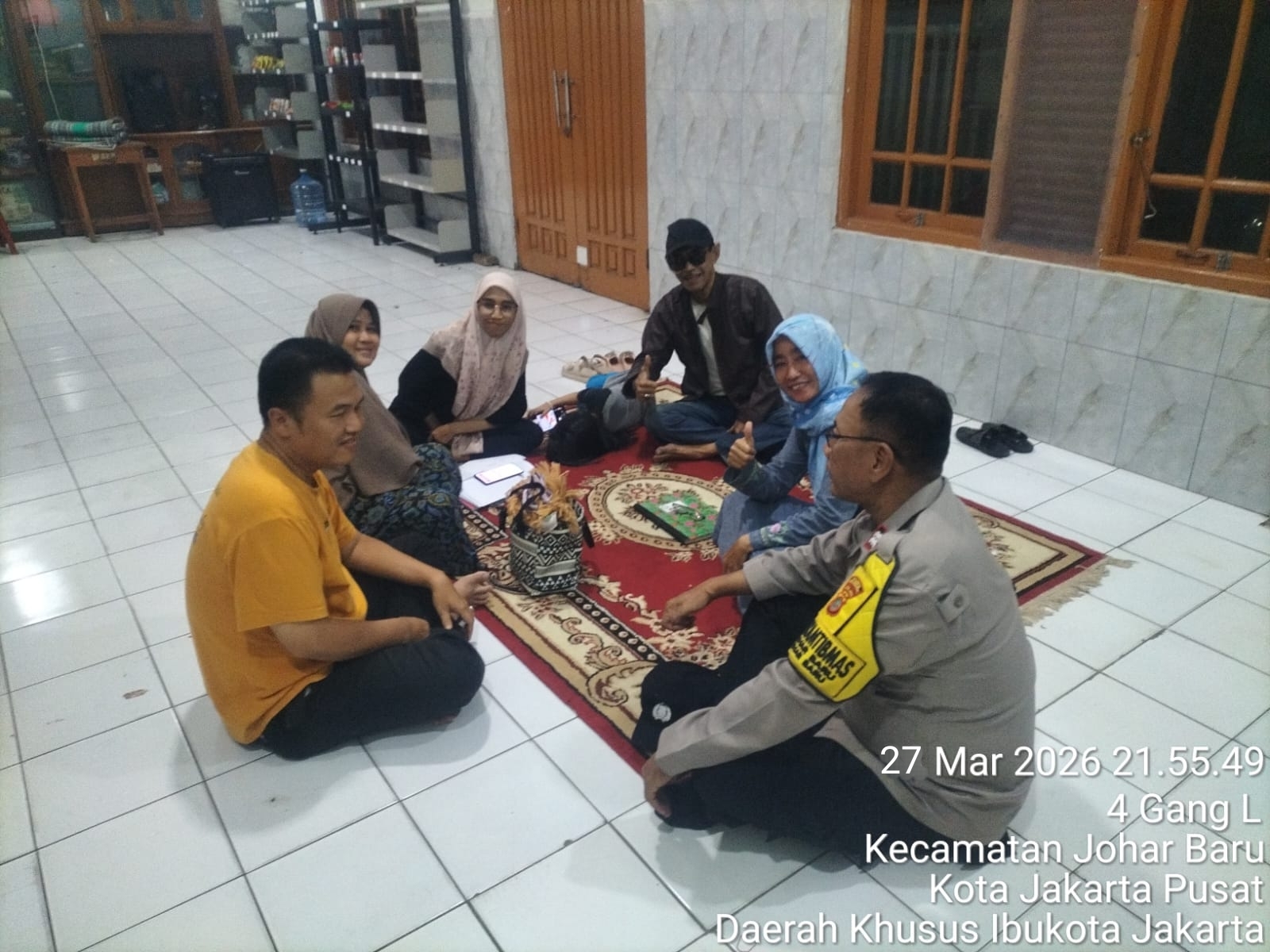 Jakarta Pusat — Guna memastikan situasi keamanan dan ketertiban masyarakat (kamtibmas) tetap kondusif, jajaran Polsek Johar Baru mengintensifkan patroli wilayah dan sambang dialogis di lingkungan warga. Kegiatan tersebut dilaksanakan di Sekretariat RW 05, Jalan Johar Baru IV A, Kelurahan Johar Baru, Jakarta Pusat, Jumat (27/3/2026) malam.
