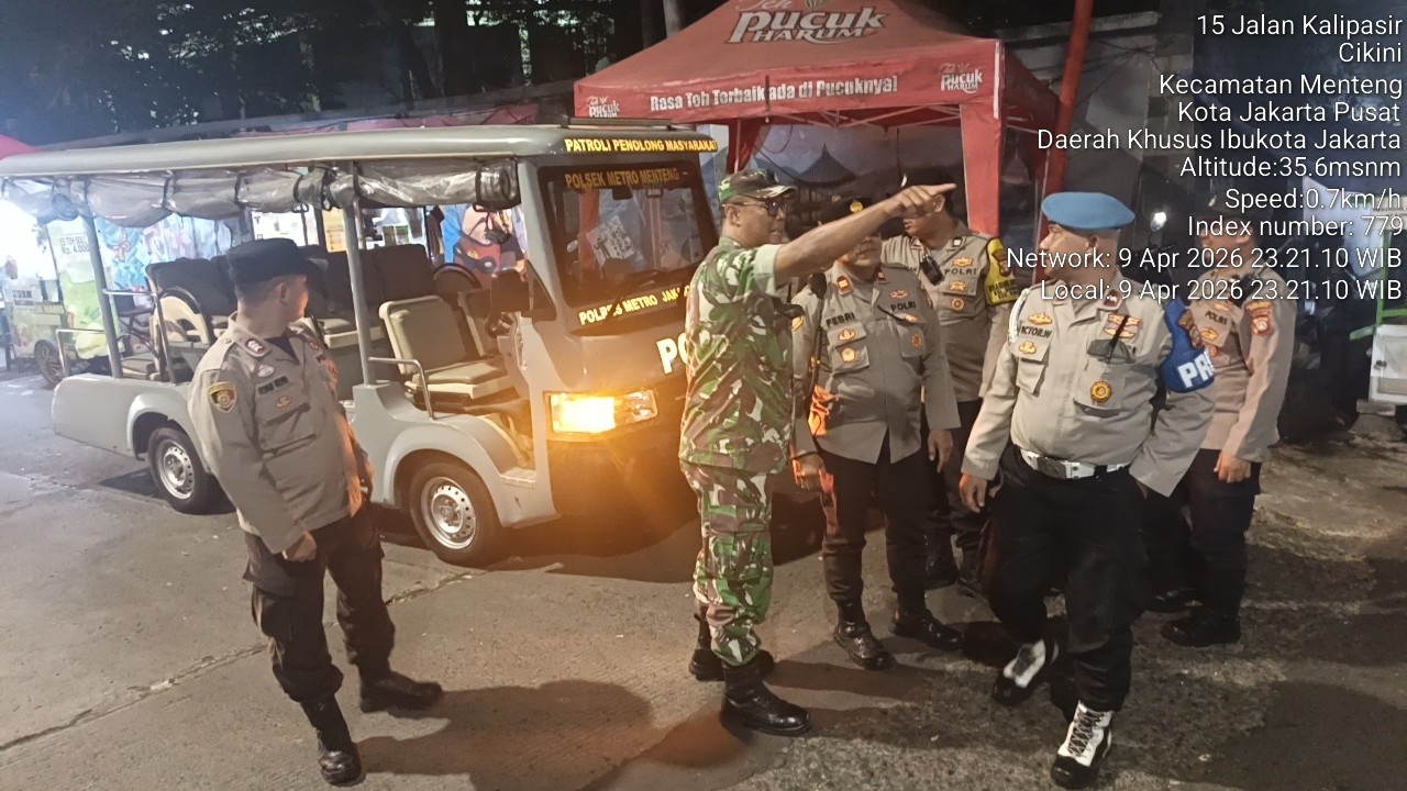 Jakarta Pusat – Upaya menjaga keamanan wilayah terus dilakukan jajaran Polsek Metro Menteng bersama unsur Tiga Pilar melalui patroli malam terpadu di kawasan rawan. Dalam rangka program Jaga Jakarta, patroli kali ini menyasar perbatasan Kwitang–Kalipasir, Menteng, Jakarta Pusat, guna mengantisipasi potensi gangguan keamanan dan ketertiban masyarakat. Jumat (10/4/2026)
