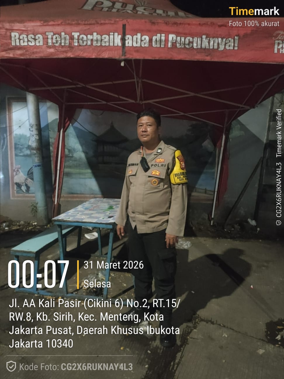 Jakarta Pusat – Pasca berakhirnya masa libur sekolah, jajaran kepolisian meningkatkan kewaspadaan di sejumlah titik rawan guna mengantisipasi potensi gangguan keamanan. Bhabinkamtibmas Kelurahan Kebon Sirih, Aiptu Ujang Rusman, bersama warga melaksanakan pemantauan wilayah di perbatasan Kalipasir, Menteng, Jakarta Pusat, sebagai langkah antisipasi terhadap gangguan kamtibmas, pencurian kendaraan bermotor (curanmor), serta tawuran warga. Selasa (31/3/2026)