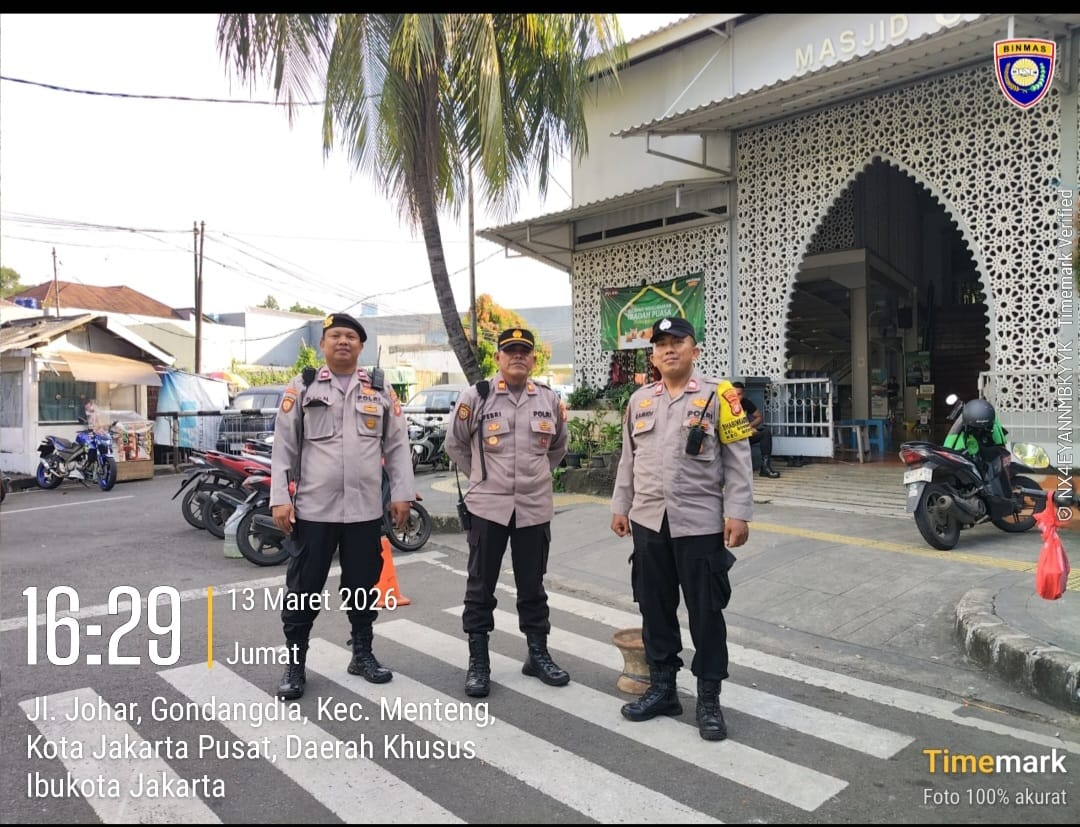 Jakarta Pusat – Dalam rangka menjaga situasi keamanan dan ketertiban masyarakat (kamtibmas) selama bulan suci Ramadhan, jajaran Polsek Metro Menteng melaksanakan kegiatan pelayanan dan pengamanan pasar tumpah Ramadhan di kawasan Masjid Cut Nyak Dien, yang berlokasi di Jalan Johar No. 7, Gondangdia, Menteng, Jakarta Pusat. Jumat (13/3/2026)
