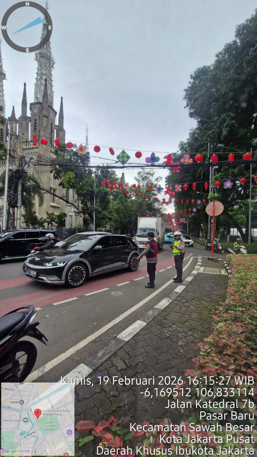 Jakarta Pusat — Guna menjaga kelancaran arus lalu lintas serta memberikan rasa aman kepada masyarakat pada jam sibuk sore hari, personel Patroli Kota (Patko) 1052 Polsek Metro Tanah Abang melaksanakan kegiatan pengaturan lalu lintas dan strong point/police hazard di Pertigaan Jalan Mutiara, Kelurahan Bendungan Hilir, Kecamatan Tanah Abang, Jakarta Pusat, pada Jumat, (06/02/2026), sore hari