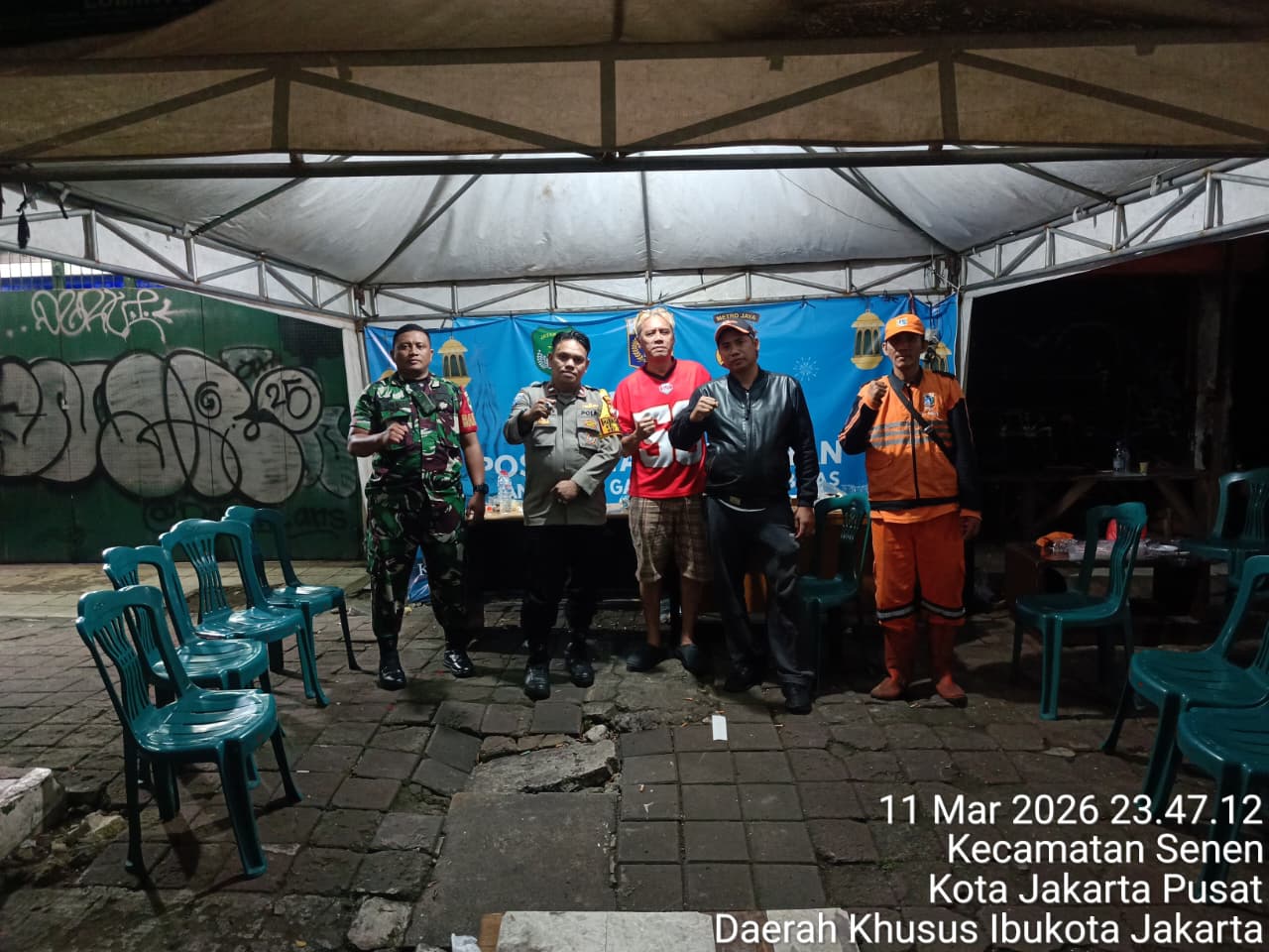 Jakarta Pusat, Petugas kepolisian bersama unsur Tiga Pilar melakukan pemantauan Posko Pantau Ramadan 1447 Hijriah di wilayah Kelurahan Senen, Kecamatan Senen, Jakarta Pusat. Kegiatan ini dilakukan sebagai upaya mengantisipasi potensi tawuran serta gangguan keamanan dan ketertiban masyarakat (kamtibmas) selama bulan suci Ramadan.
