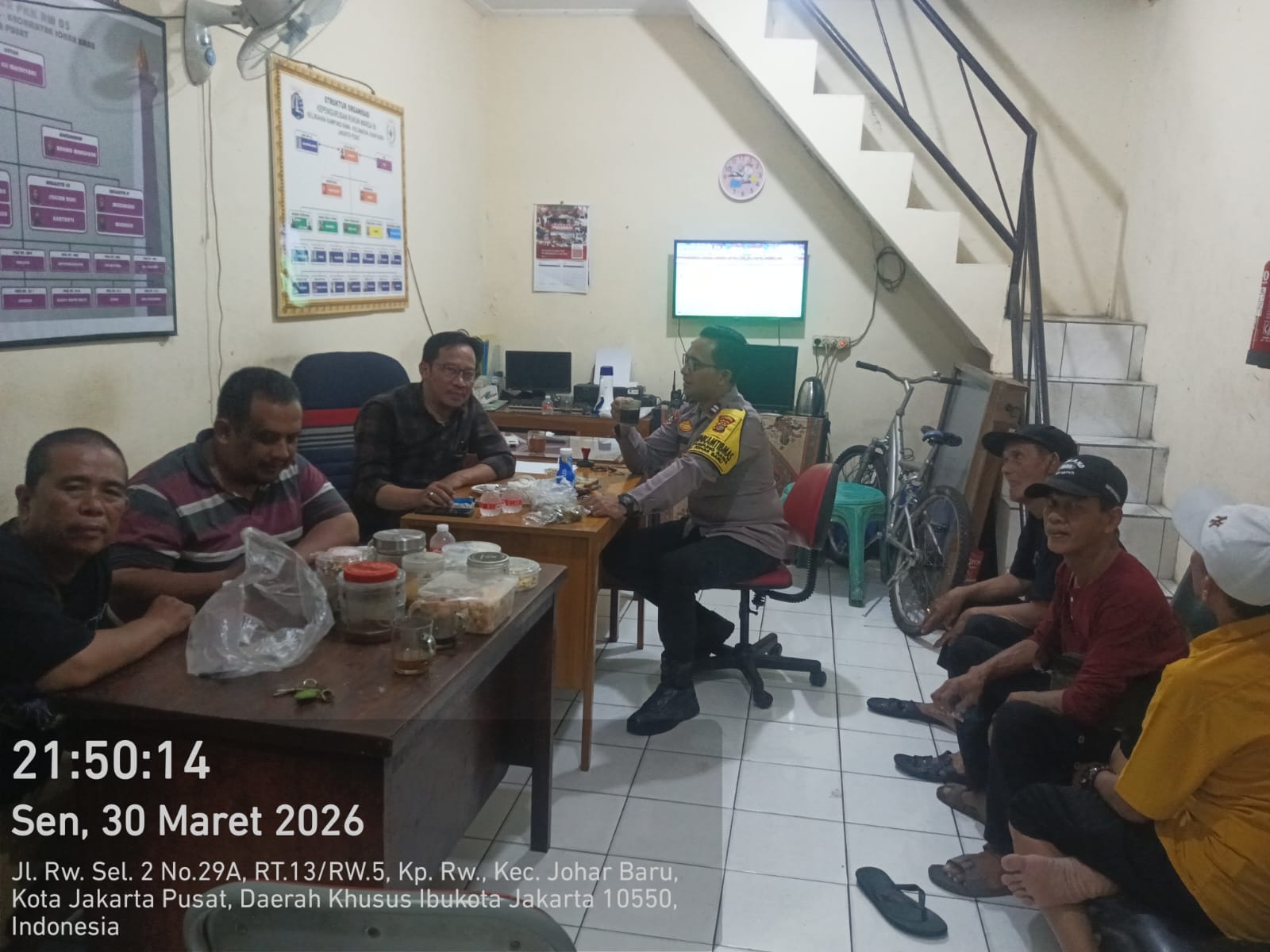Jakarta Pusat – Guna menjaga situasi keamanan dan ketertiban masyarakat (kamtibmas) tetap kondusif, jajaran Polsek Johar Baru melaksanakan patroli wilayah sekaligus sambang Pos Keamanan Lingkungan (Poskamling) di RW 05 Kelurahan Kampung Rawa, Kecamatan Johar Baru, Jakarta Pusat, pada Senin, 30 Maret 2026 pukul 21.50 WIB.
