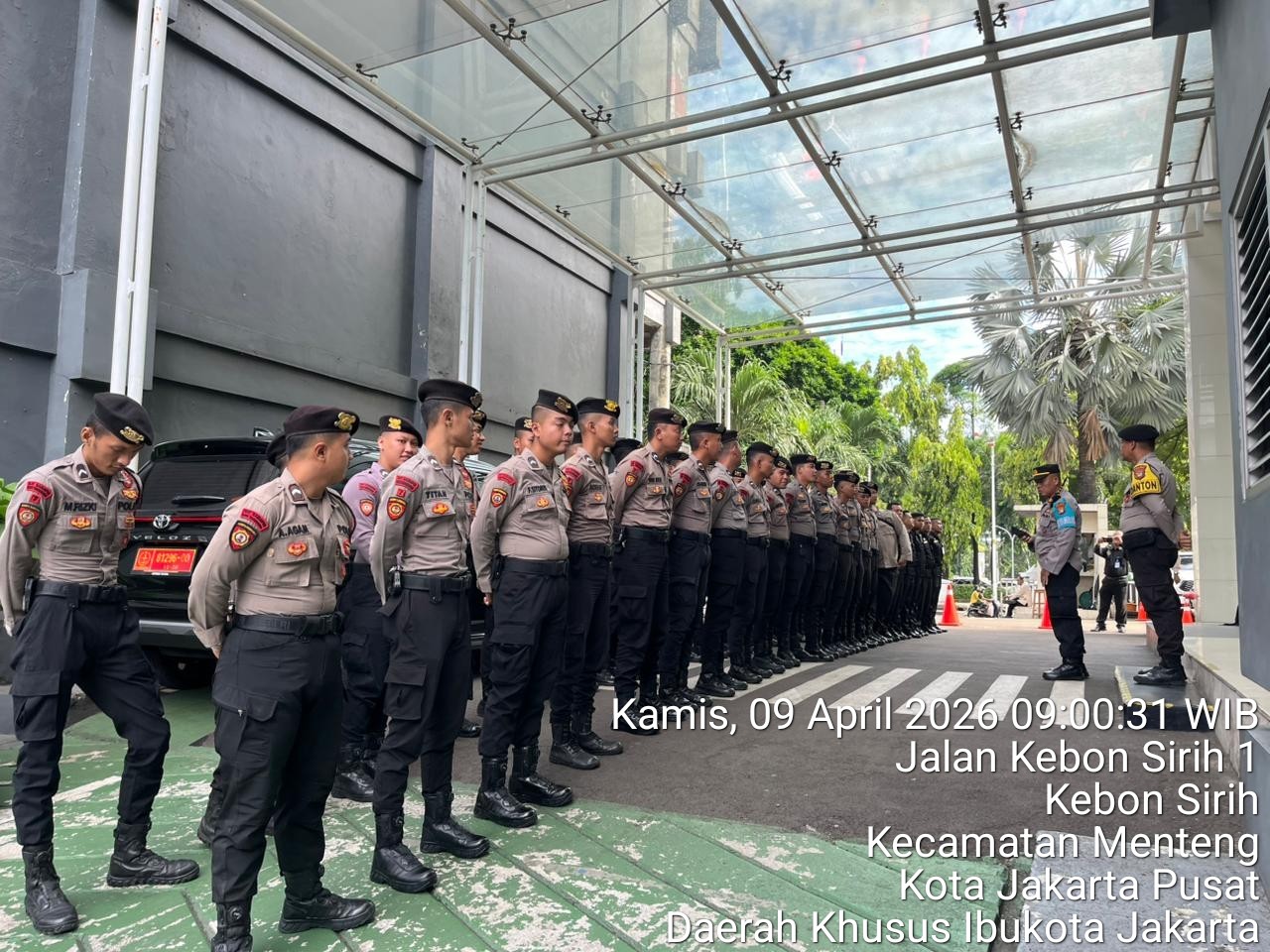Jakarta Pusat – Polsek Metro Menteng menggelar apel pasukan pelayanan dalam rangka mengantisipasi potensi unjuk rasa (unras) di Kantor Badan Gizi Nasional (BGN) yang berlokasi di Jalan Kebon Sirih No. 1, Menteng, Jakarta Pusat. Kegiatan ini merupakan langkah preventif yang dilakukan jajaran kepolisian untuk menjaga stabilitas keamanan dan ketertiban masyarakat (kamtibmas), khususnya di kawasan pusat pemerintahan yang memiliki mobilitas tinggi. Kamis (9/4/2026)