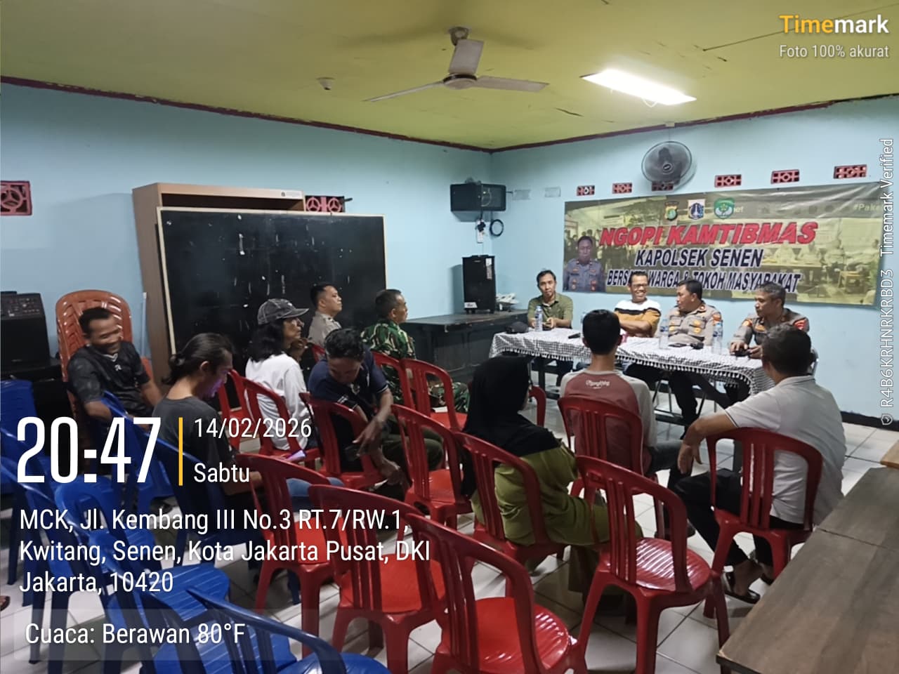 JAKARTA — Kepolisian Sektor (Polsek) Senen menggelar kegiatan Ngopi Kamtibmas bersama warga RW 01 Kelurahan Kwitang, Kecamatan Senen, Jakarta Pusat, Sabtu (14/2/2026) malam. Kegiatan yang berlangsung di Pos Sekretariat RW 01, Jalan Inspirasi Raya No. 39 itu menjadi forum dialog antara polisi, aparat pemerintah, dan masyarakat untuk memperkuat keamanan dan ketertiban lingkungan.