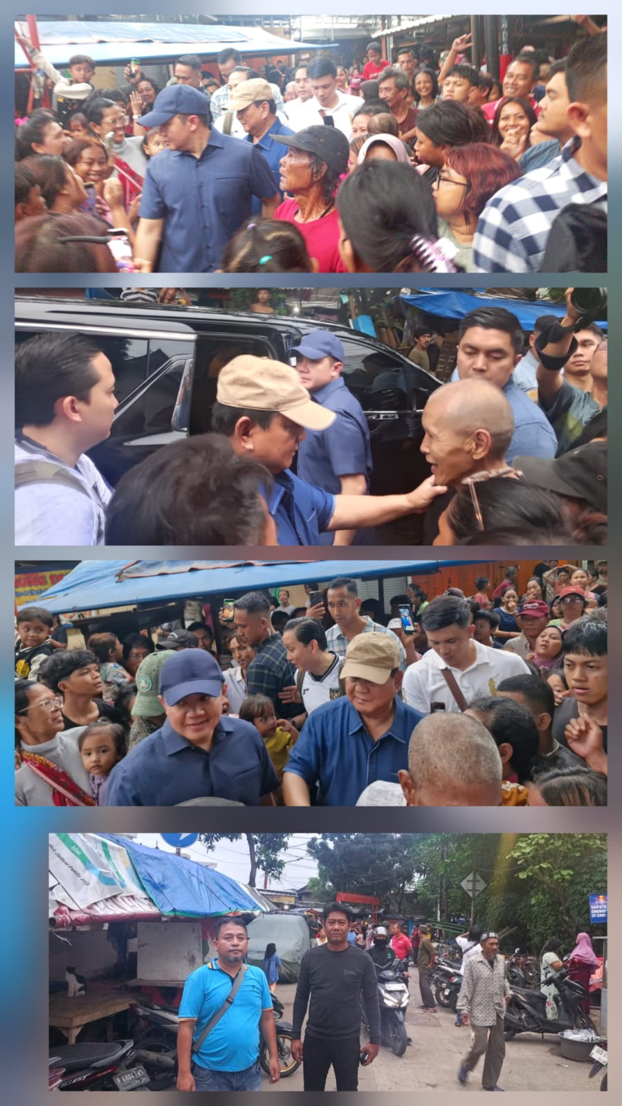 Setibanya di lokasi, Prabowo langsung berjalan memasuki area pasar dan berinteraksi dengan masyarakat. Ia tampak menyapa warga, berbincang singkat, serta menerima sambutan antusias dari pedagang maupun pengunjung pasar.
