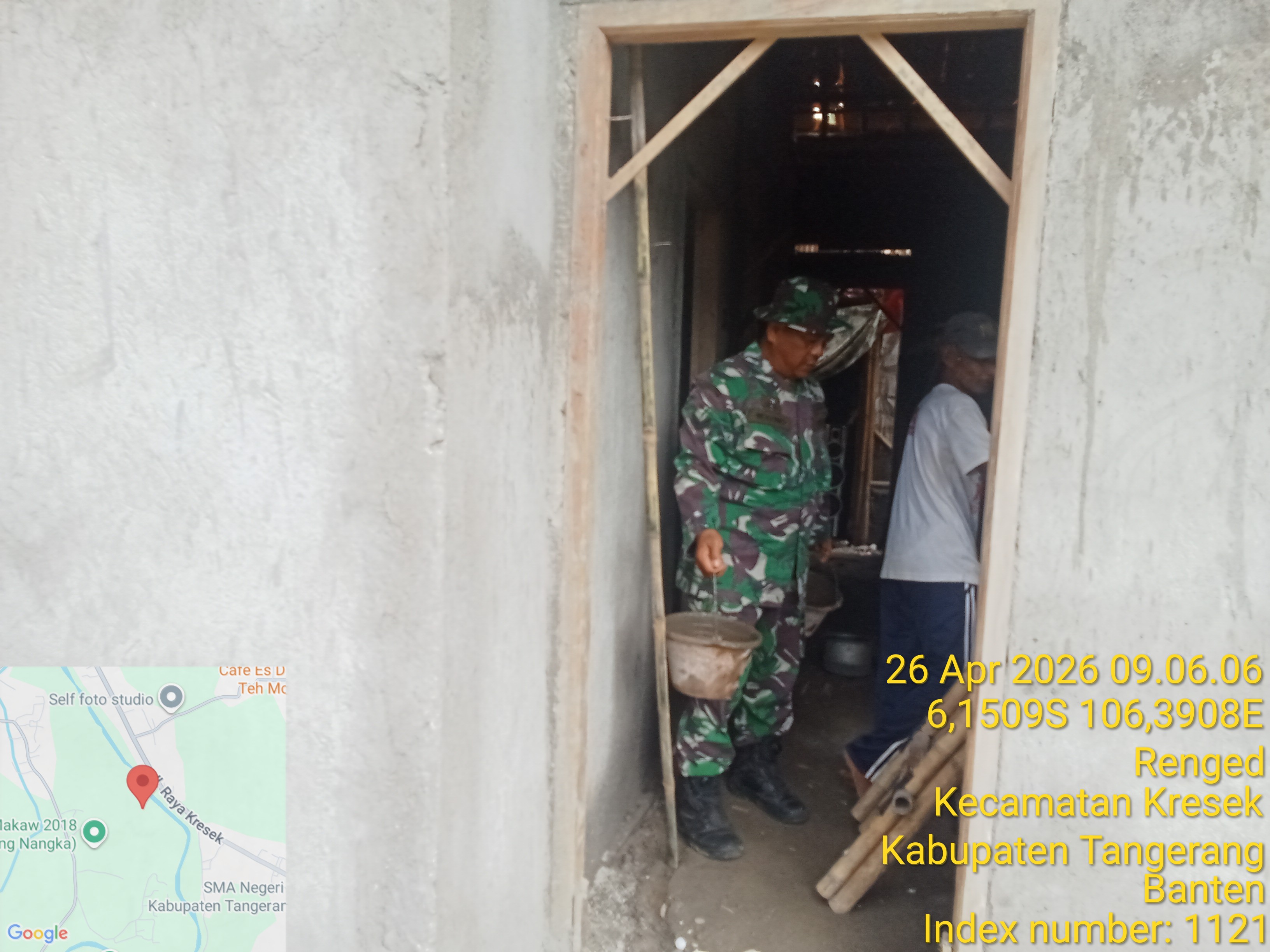 ‎Salah satu pengerjaan berlangsung di Kampung Dukuh, Desa Patrasana, Kecamatan Kresek, Kabupaten Tangerang. Rumah milik Nanang Sujana berukuran 5 x 6 meter kini memasuki tahap pelesteran dinding dan ditargetkan segera rampung.
