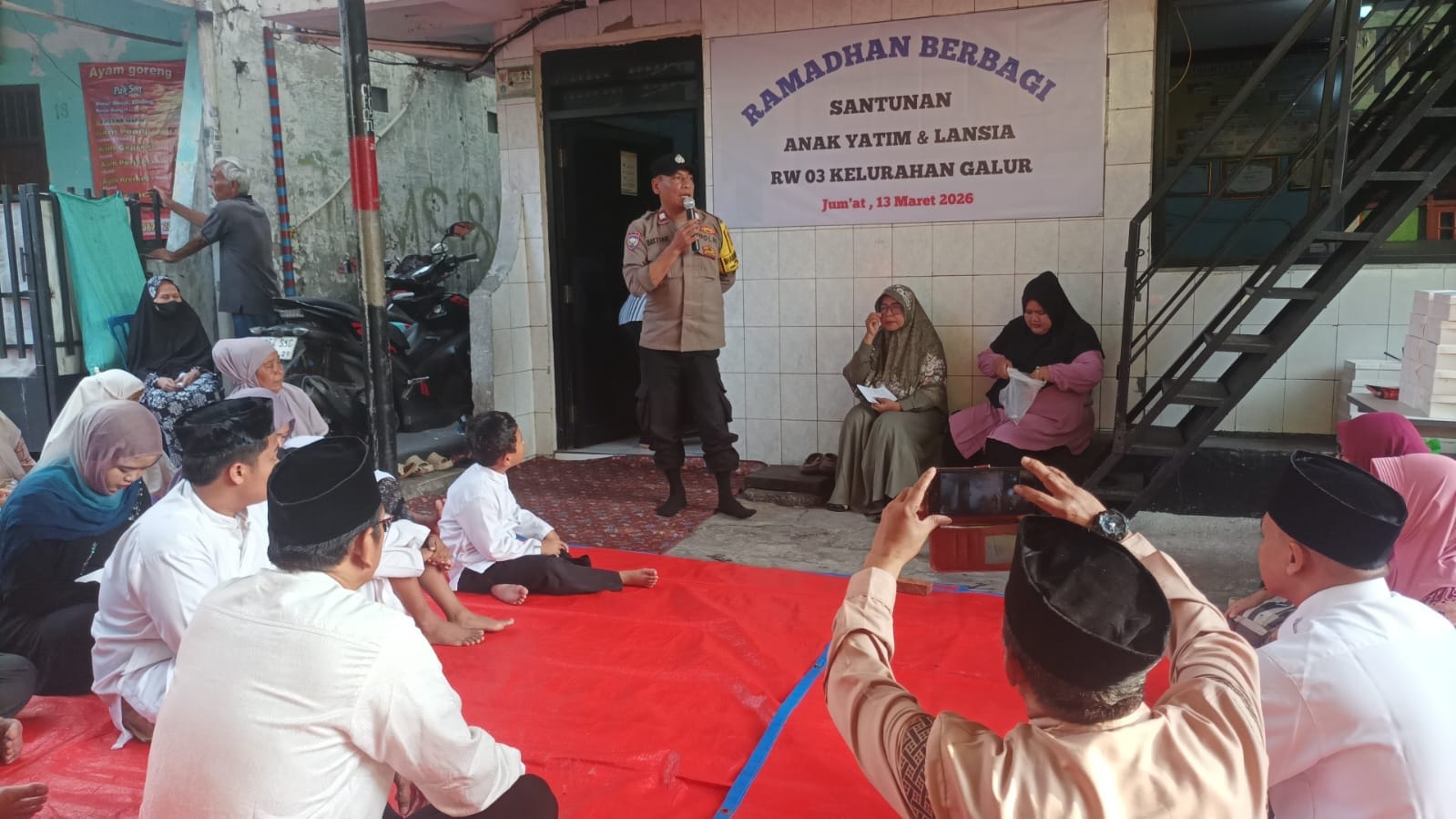 Kegiatan tersebut dilaksanakan pada Jumat, 13 Maret 2026 pukul 16.00 WIB bertempat di Balai Warga RW 03, Jalan Topaz, Kelurahan Galur, Kecamatan Johar Baru, Jakarta Pusat. Dalam kegiatan ini, Bhabinkamtibmas Kelurahan Galur Aiptu Baktiar turut hadir dan berbaur bersama warga dalam rangka mempererat silaturahmi serta memberikan dukungan kepada masyarakat.