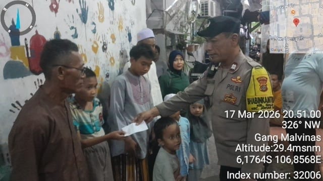 Kegiatan yang berlangsung pada Selasa (17/3/2026) sekitar pukul 20.30 WIB tersebut dilaksanakan di Jalan Rawa Tengah RT 008 RW 06, Kelurahan Galur. Dalam kegiatan itu, Bhabinkamtibmas Kelurahan Galur Aiptu Baktiar memberikan santunan kepada 10 anak yatim sebagai bentuk kepedulian dan kebersamaan di bulan penuh berkah.