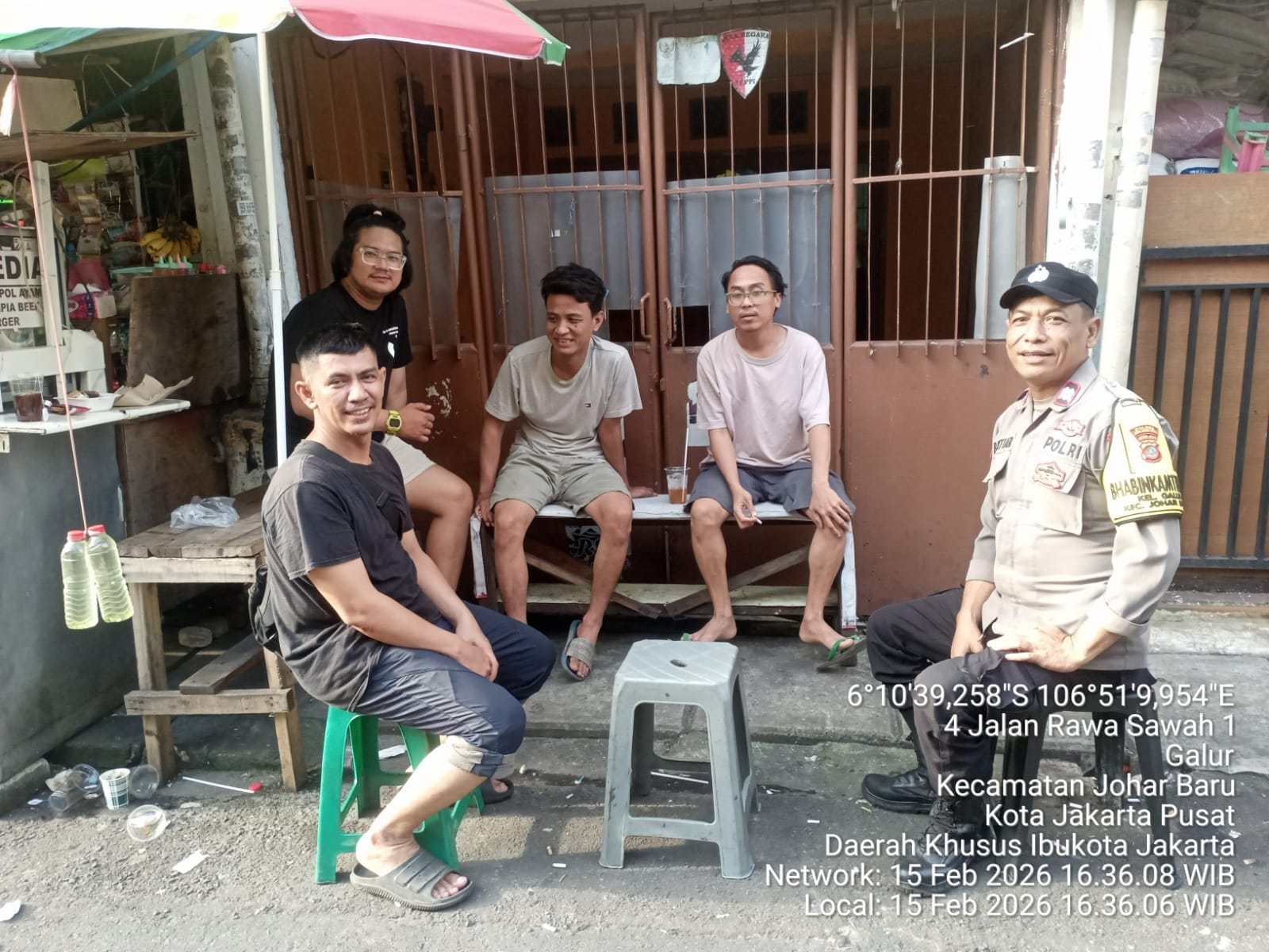 Kegiatan berlangsung pada Minggu (15/2/2026) pukul 16.30 WIB di Jalan Rawa Sawah 1 RT 015/RW 01 (Madesu), Kelurahan Galur. Bhabinkamtibmas Kelurahan Galur, Aiptu Baktiar, melakukan sambang dan cooling system dengan bertemu Ketua RT 015/01, Bapak Irfan, serta warga setempat.