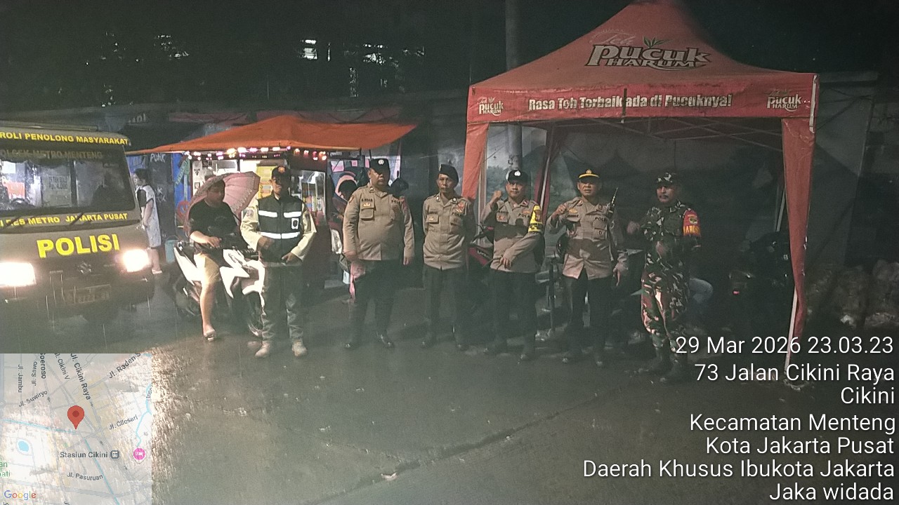Jakarta Pusat – Upaya menjaga keamanan dan ketertiban masyarakat (kamtibmas) terus diperkuat jajaran Tiga Pilar Kecamatan Menteng melalui patroli wilayah yang menyasar kawasan perbatasan Kwitang–Kalipasir, Menteng, Jakarta Pusat. Kawasan ini menjadi perhatian khusus karena memiliki potensi kerawanan tawuran antarwarga. Senin (30/3/2026)