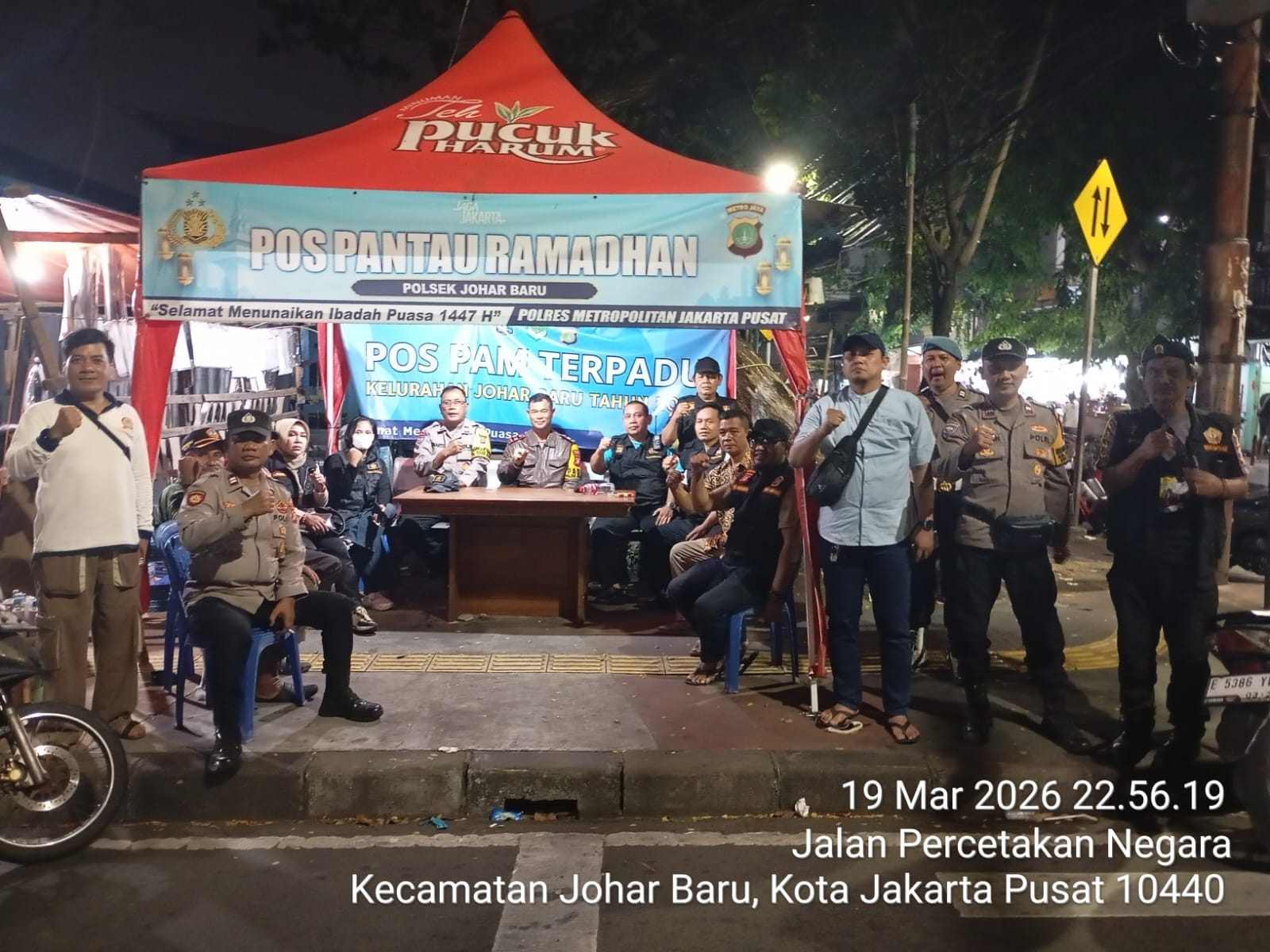 Kegiatan pengecekan dilaksanakan pada Kamis (19/3/2026) pukul 22.55 WIB di Pos Pantau Ramadhan 1447 H (Pos Pantau Jotet) yang berlokasi di Jalan Kramat Jaya Baru, Kelurahan Johar Baru, Jakarta Pusat. Tim Patroli Tiga Pilar dipimpin oleh Iptu Darwin Effendi bersama personel Polsek Johar Baru memastikan kesiapsiagaan pos dalam memberikan pelayanan dan pengamanan kepada masyarakat.