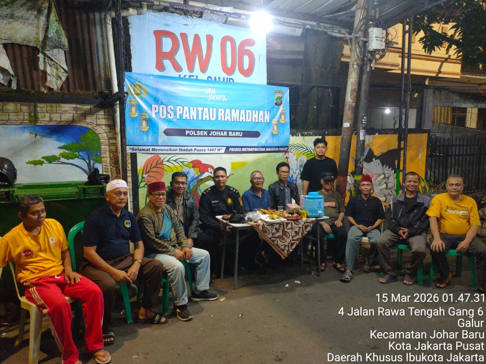 Jakarta Pusat – Untuk memastikan situasi keamanan dan ketertiban masyarakat tetap kondusif selama bulan suci Ramadhan 1447 H, Tim Patroli Tiga Pilar melakukan pengecekan Pos Pantau Ramadhan di wilayah RW 06, Kelurahan Galur, Kecamatan Johar Baru, Jakarta Pusat, Minggu (15/3/2026) sekitar pukul 01.50 WIB.
