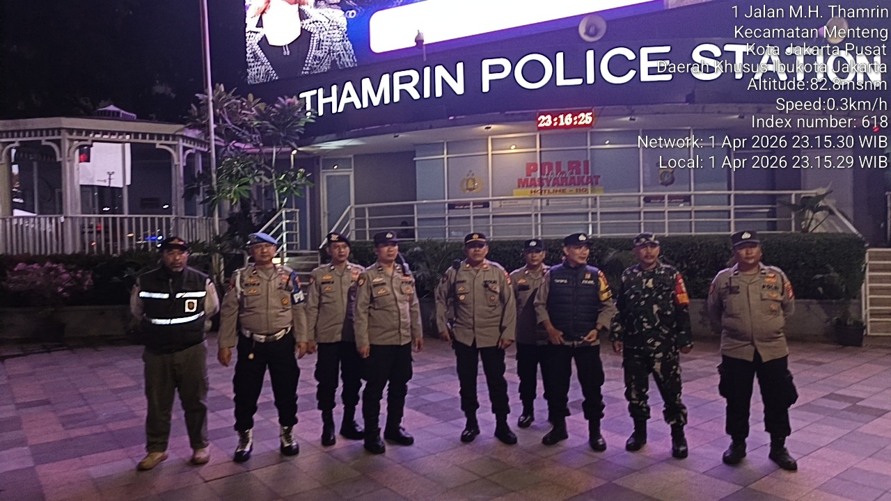 Jakarta Pusat – Guna mencegah potensi gangguan keamanan dan ketertiban masyarakat (kamtibmas), jajaran Polsek Metro Menteng bersama unsur Tiga Pilar menggelar patroli pengamanan di kawasan strategis Bundaran HI, Jalan MH Thamrin, Menteng, Jakarta Pusat. Kegiatan ini merupakan bagian dari program Jaga Jakarta dalam menjaga stabilitas keamanan wilayah ibu kota. Kamis (2/4/2026)