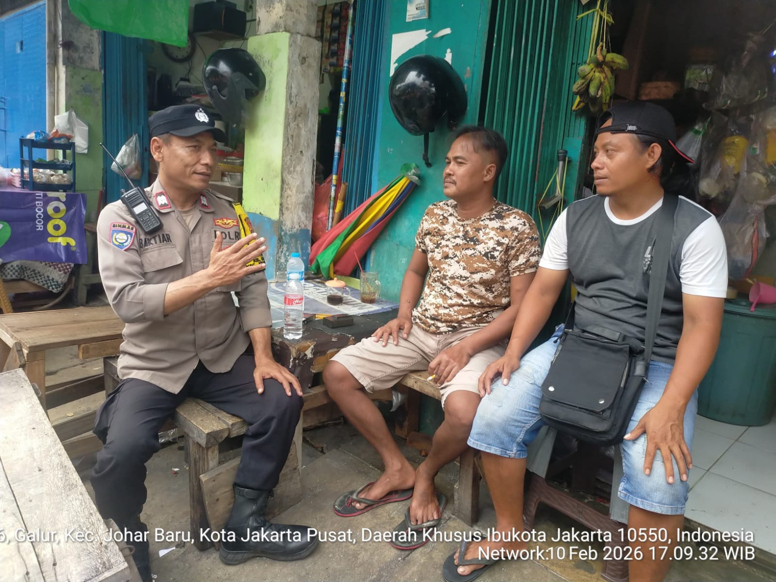 Kegiatan yang berlangsung sekitar pukul 17.00 WIB tersebut dilaksanakan oleh Bhabinkamtibmas Kelurahan Galur Aiptu Baktiar dengan menyambangi warga di Jalan Galur Selatan RT 011/01. Dalam kesempatan tersebut, petugas berdialog langsung dengan Nanang selaku warga setempat bersama warga lainnya.