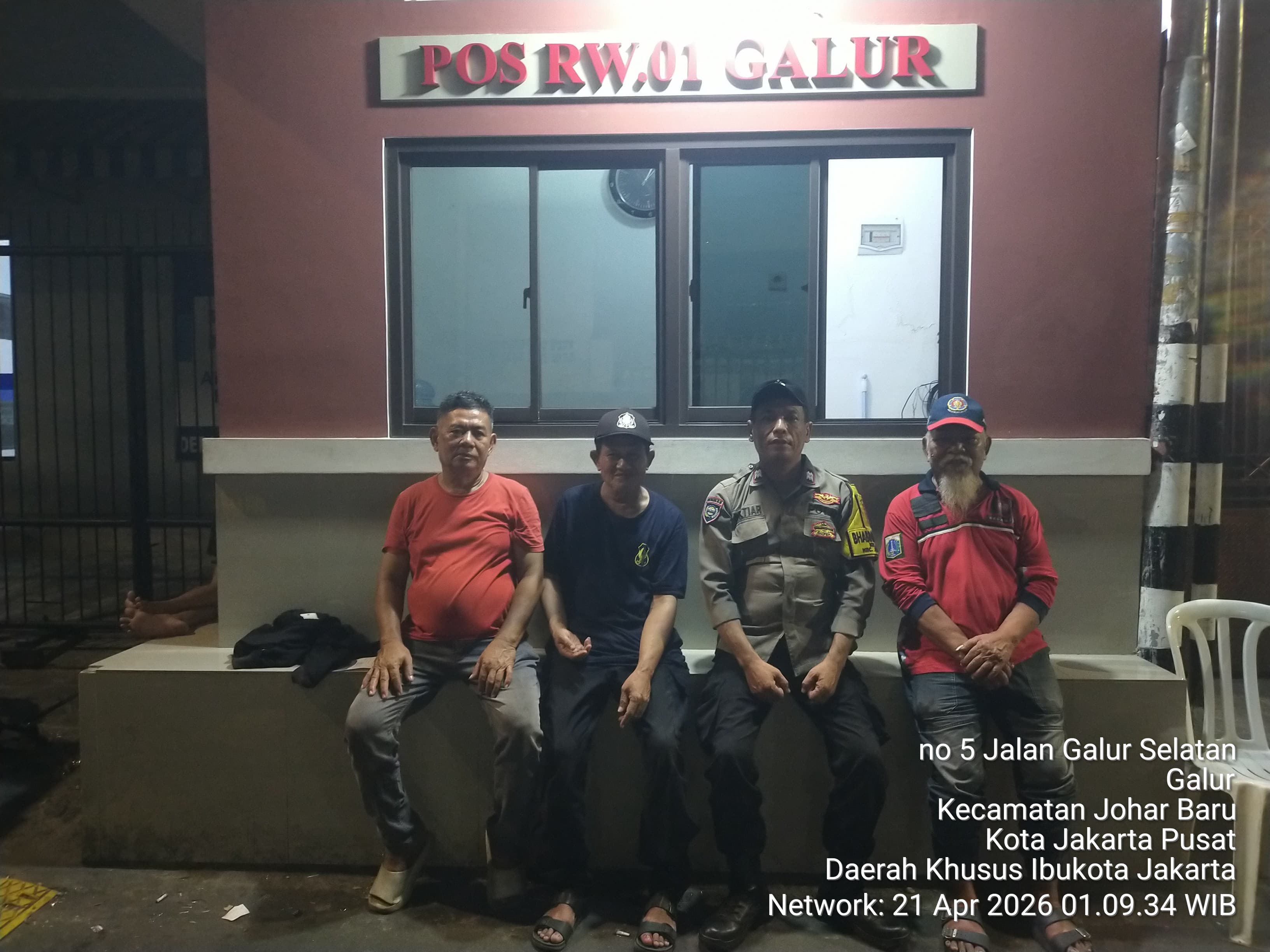 Jakarta Pusat – Guna menjaga stabilitas keamanan lingkungan, jajaran Polsek Johar Baru melalui Bhabinkamtibmas melaksanakan patroli dan sambang ke Pos Kamling RW 01 Kelurahan Galur, Kecamatan Johar Baru, Jakarta Pusat, pada Selasa (21/4/2026) pukul 01.00 WIB.