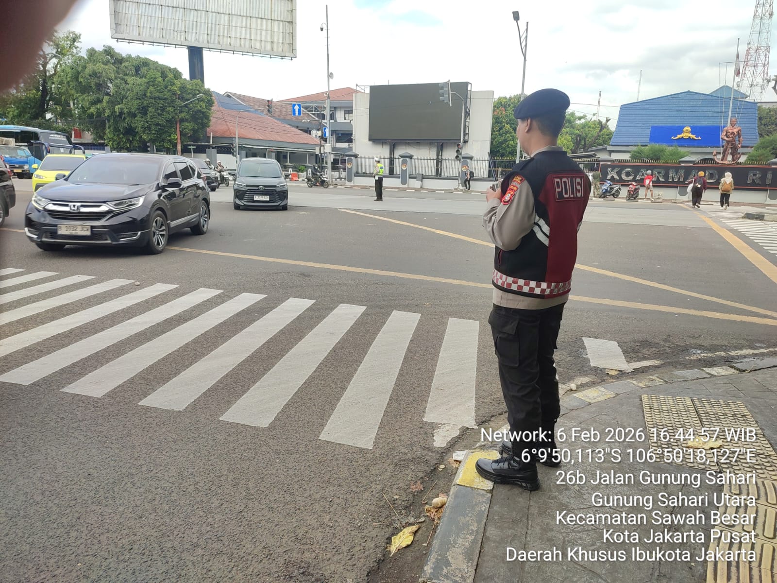 Jakarta Pusat — Dalam rangka menjalankan salah satu tugas pokok Polri menjaga keamanan, keselamatan, ketertiban, dan kelancaran lalu lintas, Polsek Sawah Besar melaksanakan Giat Pengecekan Ploting Gatur Lalin Sore Hari pada Jumat (6/2/2026). Kegiatan pengecekan ini dilakukan oleh Kanit Provos Polsek Sawah Besar Iptu Budi Siagian bersama Bripka Supriyadi dan Brigadir Taufik mulai pukul 16.00 hingga 18.00 WIB.
