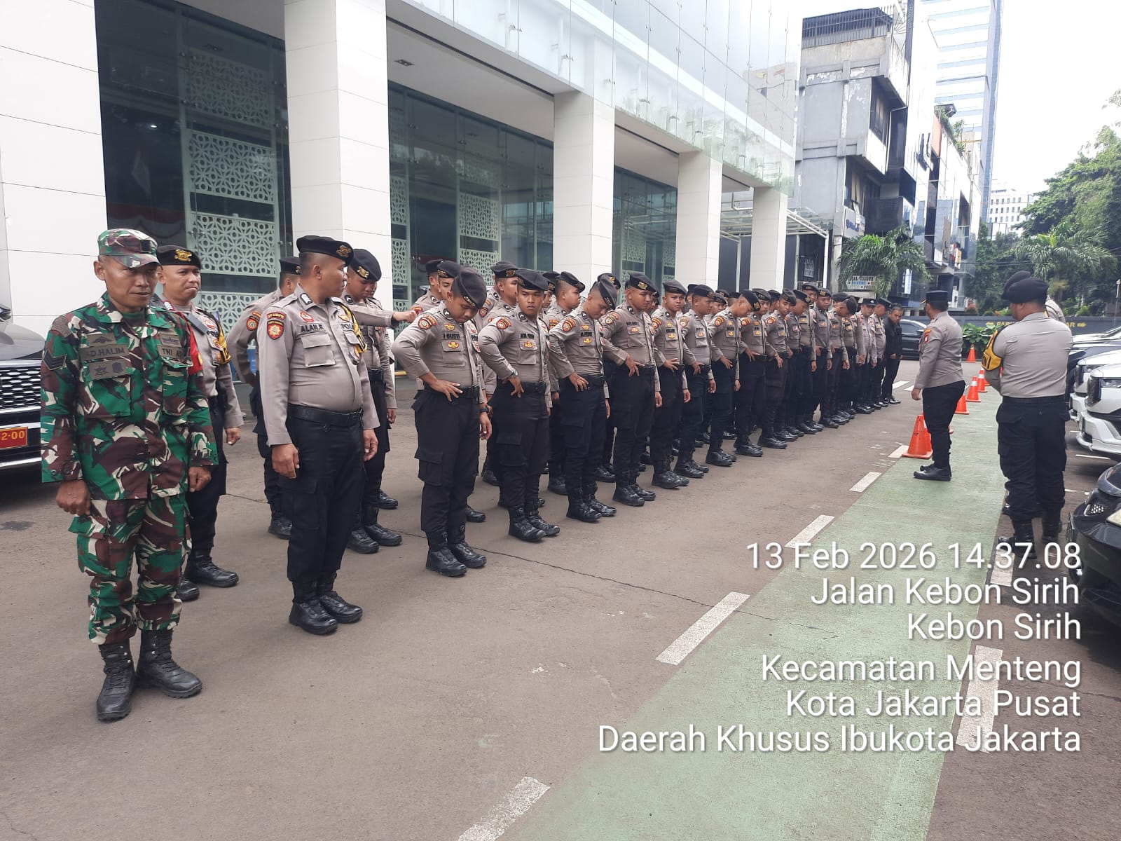 Jakarta Pusat — Wakapolsek Metro Menteng Kompol Bambang Santoso memimpin langsung apel pelayanan pengamanan dalam rangka antisipasi unjuk rasa (unras) di Badan Gizi Nasional yang berlokasi di Jalan Kebon Sirih No. 1, Menteng, Jakarta Pusat. Kegiatan ini merupakan langkah preventif kepolisian untuk memastikan situasi kamtibmas tetap aman, tertib, dan kondusif di kawasan vital pusat pemerintahan. Jumat (13/2/2026)